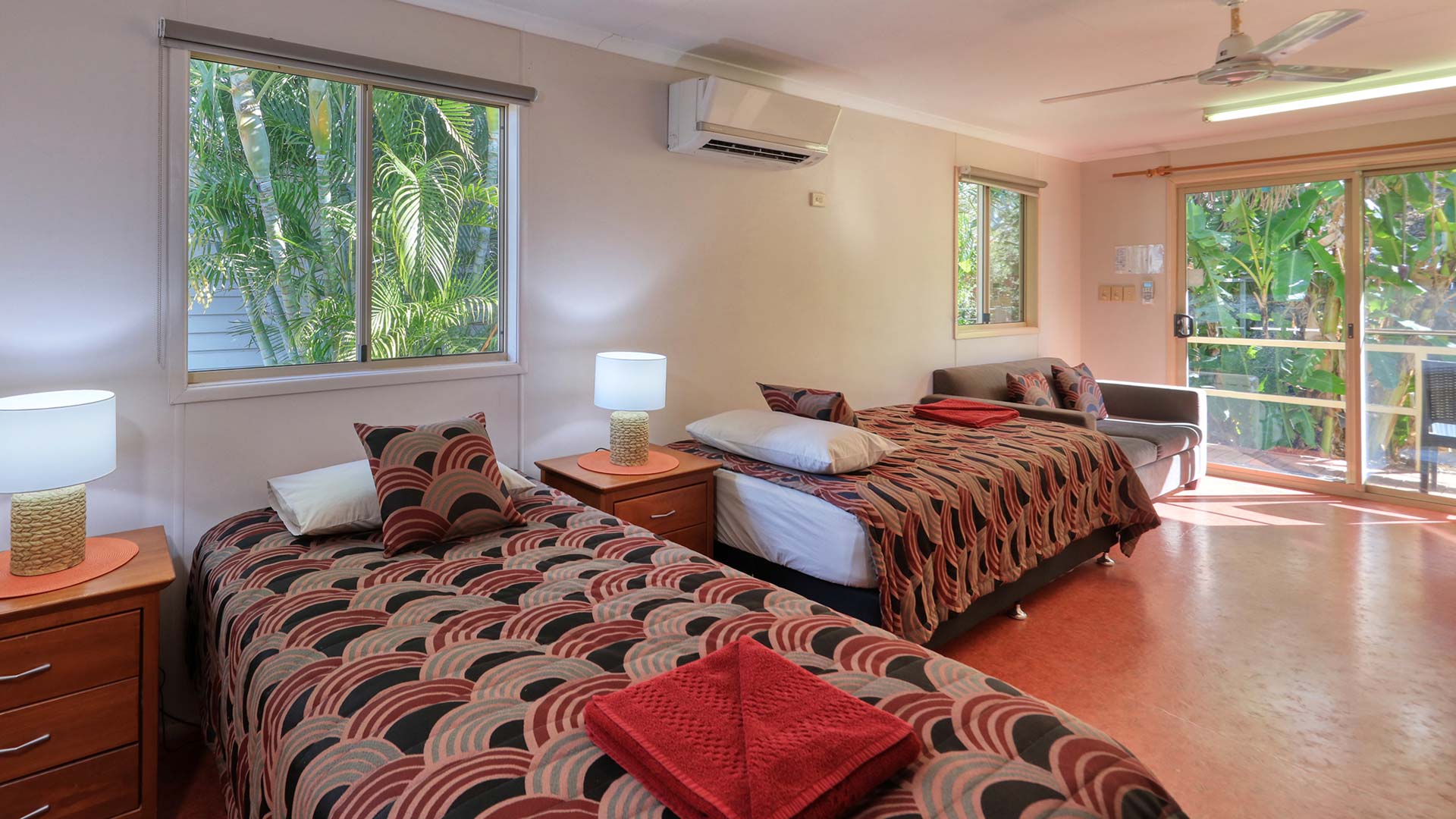 Savannah Lodge accommodates guests in affordable, modern and comfortable cabins.  The cabins are nestled towards the perimeter of this outback oasis.   Easy access to the facilities and communal spaces are enabled by pathways, and steps or ramps, that connect the cabins across the property.